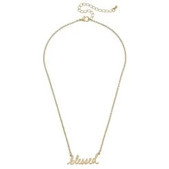 Worn Gold Julia Blessed Script Delicate Chain Necklace, 16″