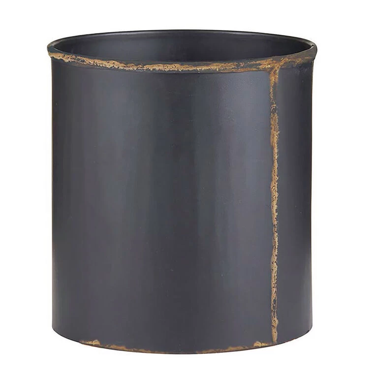 Recycled iron and brass cylindrical crock makes a great storage container for all your cooking utensils. Featuring a distressed rim, this sturdy black container from Santa Barbara Design Studio conveys your repurposing mentality and farmhouse-chic style. It makes a great gift idea for weddings, new home housewarmings and more.