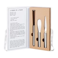 Start off every day in a good way with this breakfast tool set from Face to Face. Stainless steel kitchen utensil set includes a frother for making foamy lattes, a flat spoon-shaped jam spreader and a butter scraper along with a recipe for Birds in a Nest inside the front cover of the book-shaped box. This breakfast tool kit makes a great gift for weddings, Mother’s Day, Father’s Day and more.
