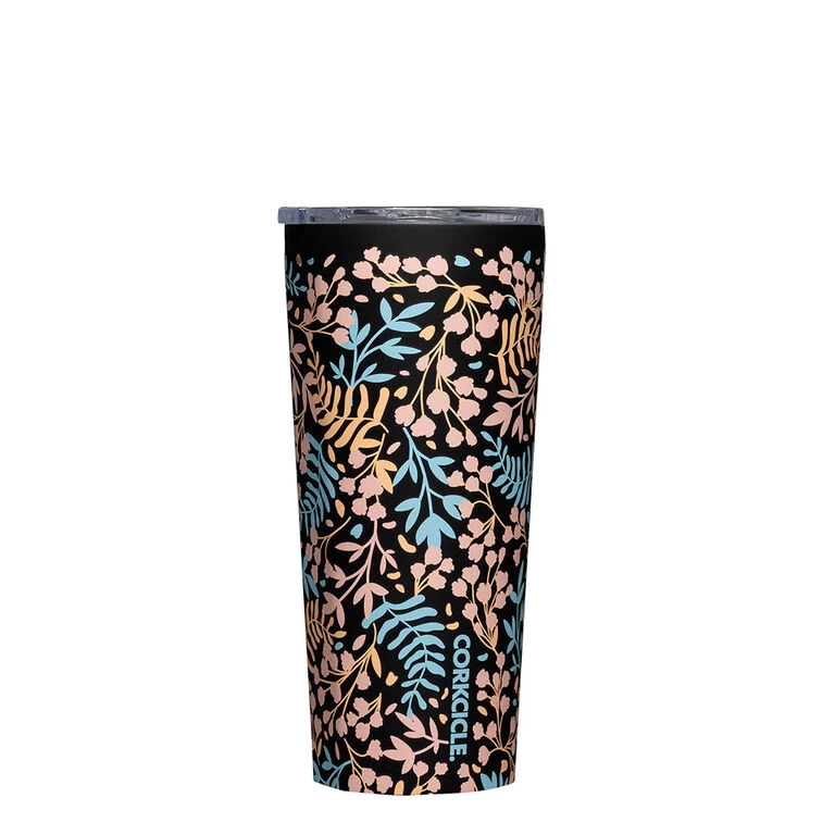 - Corkcicle floral stainless steel insulated tumbler features a clear lid with sliding closure.