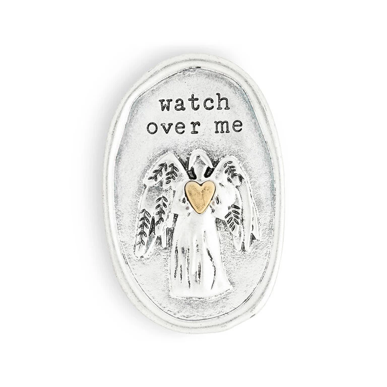 Remind yourself or a loved one that angels are with them wherever they go with this artisan clip for their car’s sun visor. The handcrafted silver token features an angel holding a gold heart with “watch over me” engraved above. Makes a wonderful token of your love.