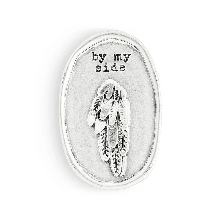 Remind yourself or a loved one that angels are with them wherever they go with this artisan clip for their car’s sun visor. The handcrafted silver token features a single angel wing with “by my side” engraved above. Makes a wonderful token of your love.