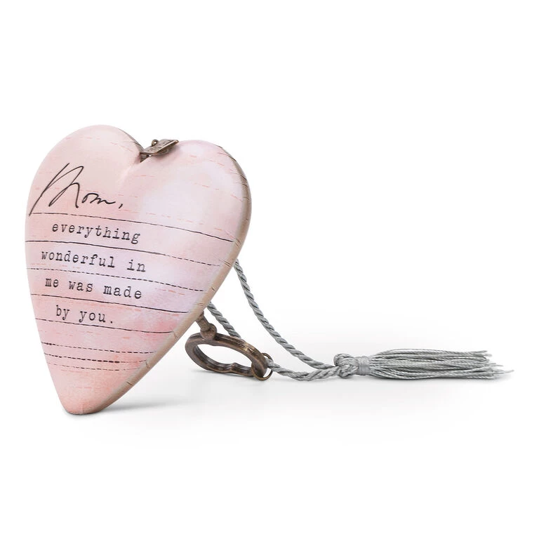 - Demdaco dear you resin art heart sculpture for mom features a nylon decorative tasseled cord, attached metal key and heartfelt message.