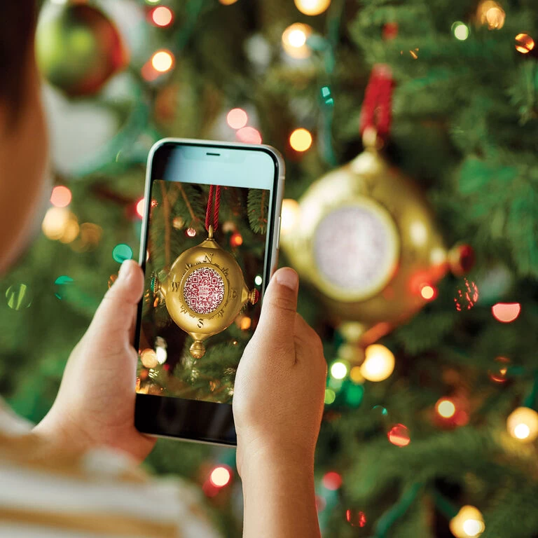 - Demdaco plastic compass ornament includes hardcover journal, red cord hanger and a QR code to scan on a smart phone for a variety of Santa messages.