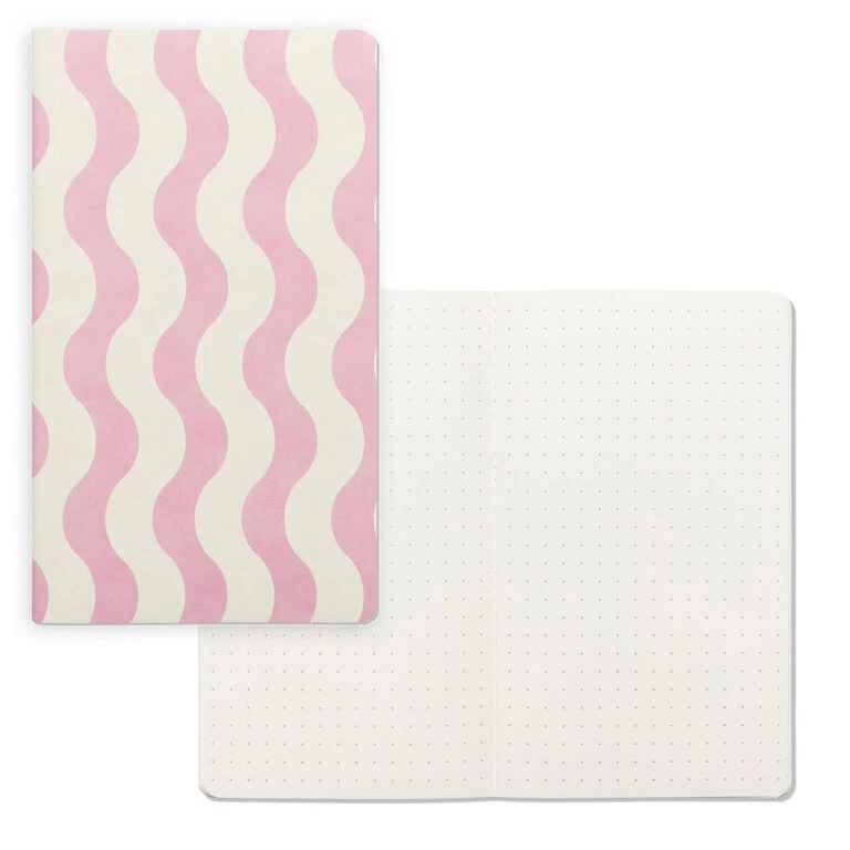 Get your days organized with this three-pack of single flex notebooks. Cute cover designs of green-and-white checks, orange-and-white stripes and pink-and-white wavy lines make a cheery backdrop for notes, goals and lists. Each softcover notebook features a different interior: dot, grid and unlined checklist. Give this cute notebook set as a fun gift for graduations, birthdays, Mother’s Day and more.