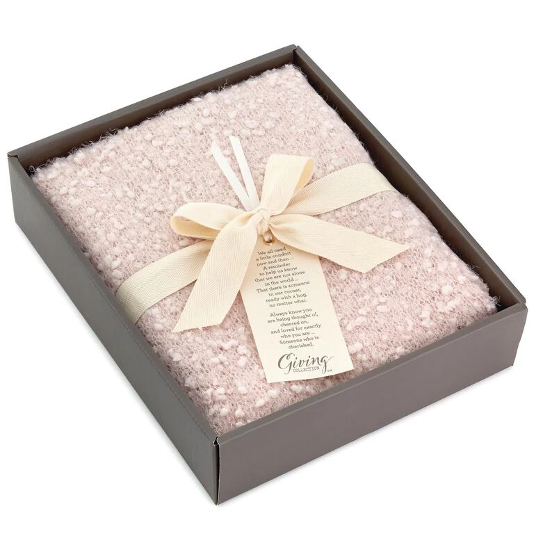 Give this cozy and sumptuously soft shawl to a friend or family member as a reminder of your love when you can’t be there to give them a warm hug in person. This dusty pink-toned nubby nylon shawl includes pockets to hold small items like a phone, tissues or eyeglasses. Packaged for gifting, this snuggly wrap also includes a keepsake bookmark printed with a message of encouragement.