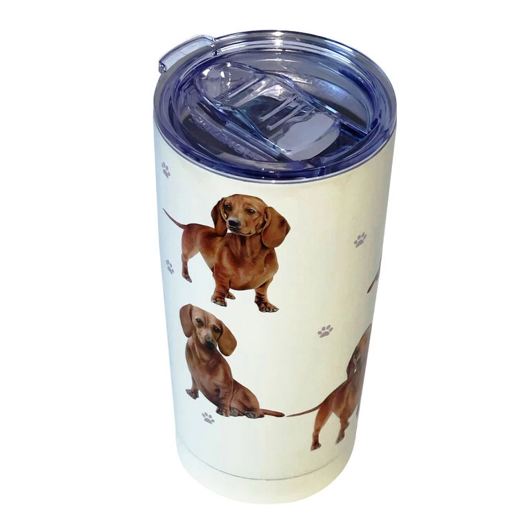 This Serengeti tumbler from E&S Pets comes with a BPA-free, spill-proof lid with an open-and-close slider. Stainless steel cream-colored tumbler features brown dachshunds in fun poses along with tiny paw prints. Using special 3D German printing technology with a high gloss finish, this fun dog tumbler is the perfect gift for dachshund owners and dog lovers alike. It makes a great companion when walking your favorite fur baby, running errands and more.