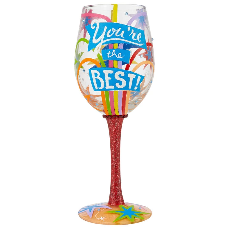 Celebrate the big and little moments with a show-stopping gift that lets someone know how special they are to you. This handpainted wine glass features a vibrant design of stars, streamers and gems along with a confidence-boosting message. Packaged in a signature Lolita gift box, this unique glass is ready for gift giving.