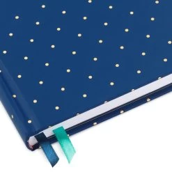 Take notes and collect favorite quotes with this charming hardback notebook. Journal cover features a famous line from Oscar Wilde and mini polka dots in gold foil. Navy blue notebook includes an elastic band closure, dot-grid pages and two ribbon bookmarks for holding your place. This unique journal makes a great birthday or graduation gift.