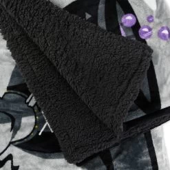 Get in on the fun of the Sanderson sisters’ spells with this cute and cozy blanket with stylized designs and a quote from the classic movie “Hocus Pocus.” Winifred, Sarah and Mary appear larger than life between lettered rows carrying the black flame candle legend.