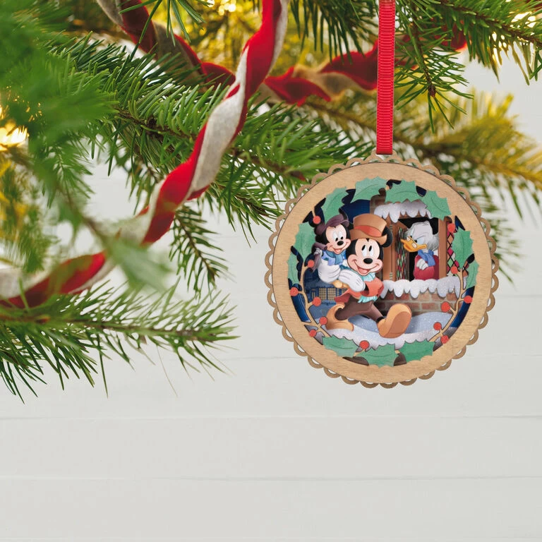 A classic holiday tale with a heartwarming Disney twist, “Mickey’s Christmas Carol” is loved by all who see it! This heirloom-style Christmas tree ornament features a laser-cut wood frame with an intricate papercraft scene of Bob Cratchit (Mickey Mouse) carrying Tiny Tim as Ebenezer Scrooge McDuck looks on. Celebrate the 40th anniversary of the beloved story with this charming decoration that makes a wonderful gift for Disney fans of all ages.