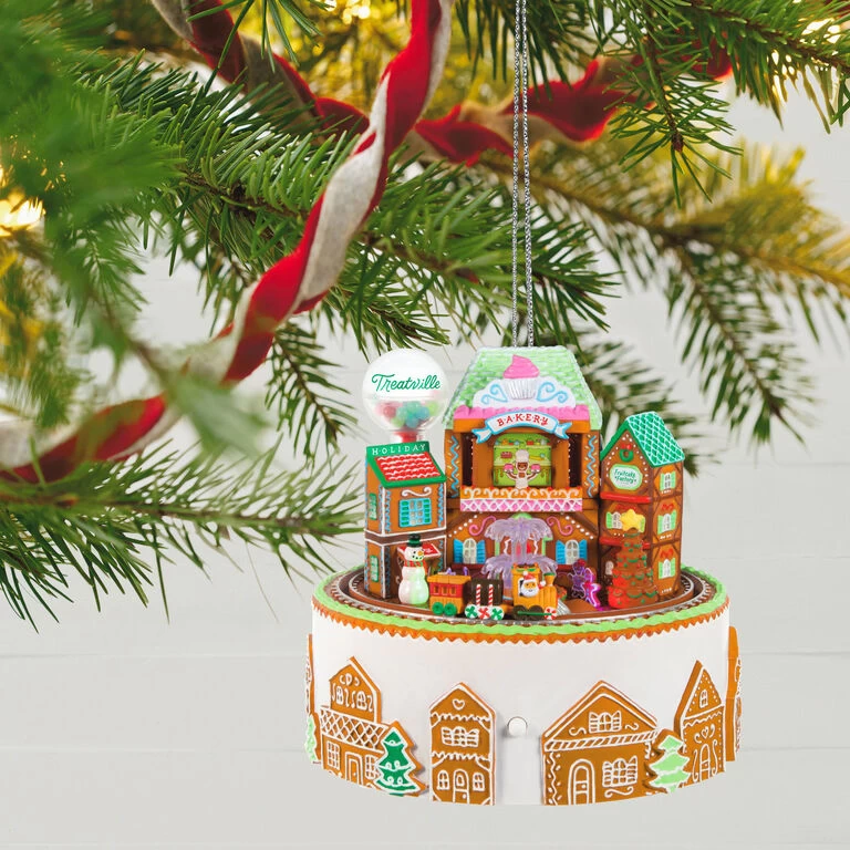 - Key Features: Press the button on the Magic Light, Sound and Motion ornament to see it illuminate and hear Santa give a tour of the Gingerbread Village as the train travels around the track. Includes music from “Dance of the Sugar Plum Fairies.”