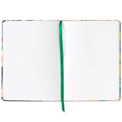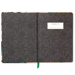 - Hardback notebook features a bold floral design, linen texturing and a mini floral print binding.