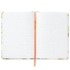 Let your ideas take root and bloom with this elegant, fabric-covered journal. Hardback notebook features a modern botanical design of white and coral flowers and unique leaves with a navy blue border trimming the spine. Notebook includes a hefty 300 lined pages to capture all your flights of fancy and a ribbon bookmark to hold your spot.