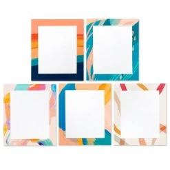- Stationery set includes a memo holder with front insert and 6 displayable art prints, memo pad and 20 flat note cards (4 each of 5 designs). Envelopes not included.