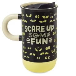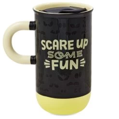 Watch the Halloween tricks begin when you add hot liquid to this mug to reveal its color-changing effect. Lidded cup features a scared Snoopy holding onto Charlie Brownāand when cup is filled with coffee, tea, cocoa or any hot drink, spooky eyeball designs appear in the background. Black mug with lid features chartreuse accents on a black background.