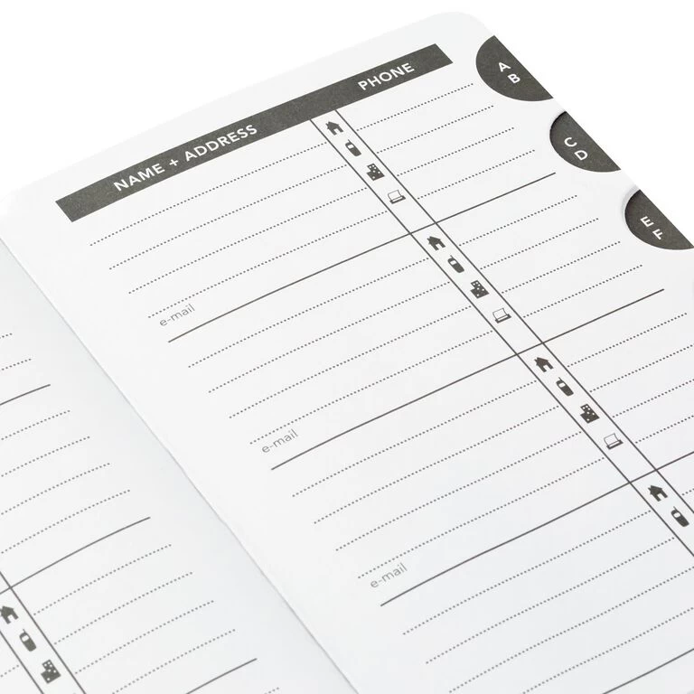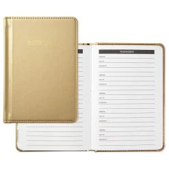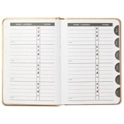Stay organized in chic style with this hardback matte gold address book. It holds 4 lines of information per contact, including an email address and multiple phone numbers. Twelve alphabetical tabs along the side make it easy to find info, plus spots in back hold emergency contacts, frequently called numbers, passwords, birthdays and anniversaries.