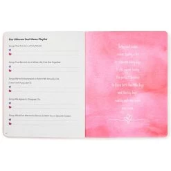 - Softcover journal with gold elastic ribbon bookmark features heartfelt writing prompts on the pages inside.