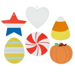 Greet neighbors and friends and welcome family members home with this unique sign perfect for a covered front porch. Large wood sign includes six different attachments that fit on a hook in the “O” space of “Home” so you can add a seasonal spin. Painted wood decorations include: heart, Easter egg, patriotic star, pumpkin, candy corn and peppermint.