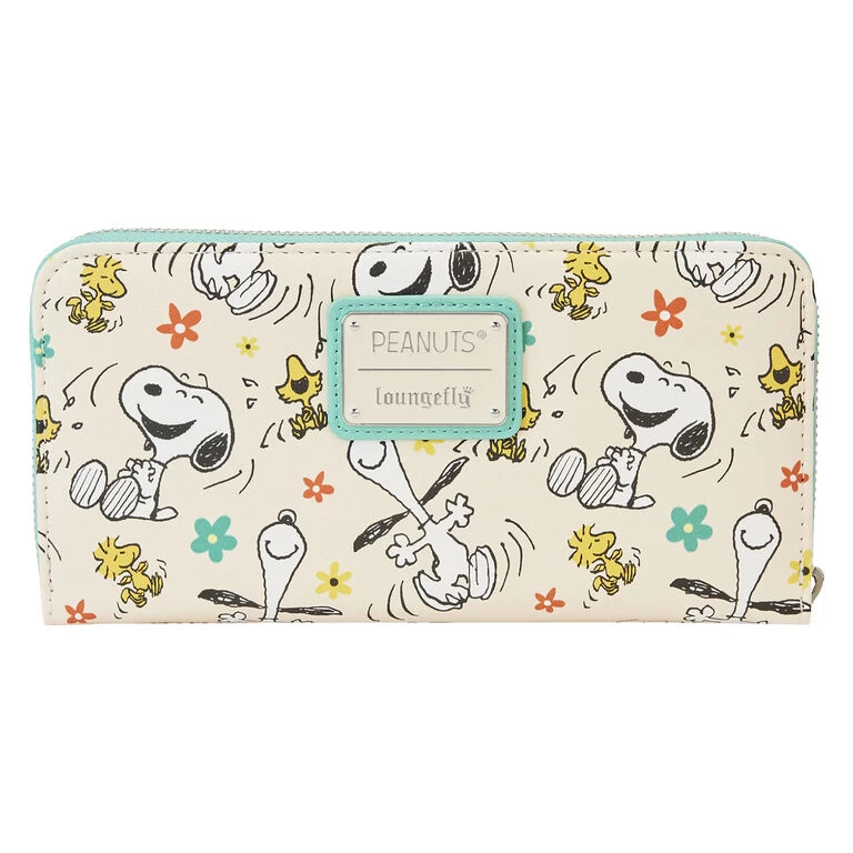 - Loungefly Peanuts Snoopy and Woodstock faux leather wallet features printed and appliquéd details.