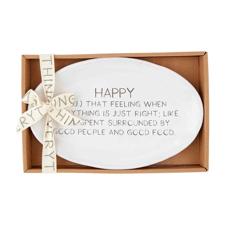 Surround yourself with good people and pile this charming platter with good food. Mud Pie glazed ceramic tray features a positive message defining happy and is gift boxed with a ribbon imprinted with “everything.” It makes a thoughtful and functional gift for birthday, Mother’s Day, wedding or bring it to a party hostess filled with homemade treats.