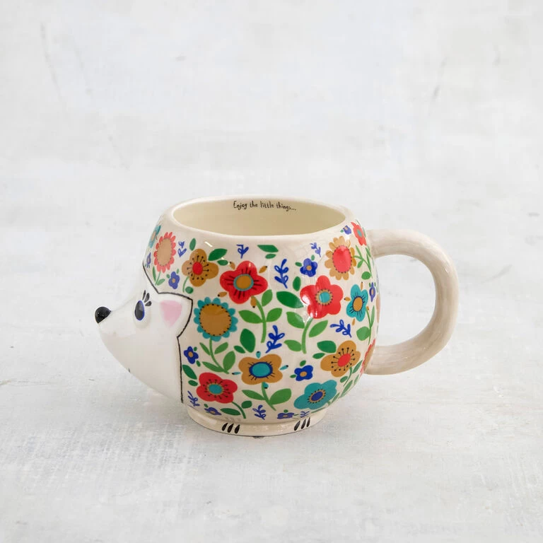 - Natural Life ceramic hedgehog mug is hand-sculpted and features a colorful floral design.