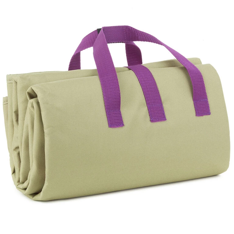 - Soft terry blanket features waterproof backing. Includes handles to roll up for easy carrying.