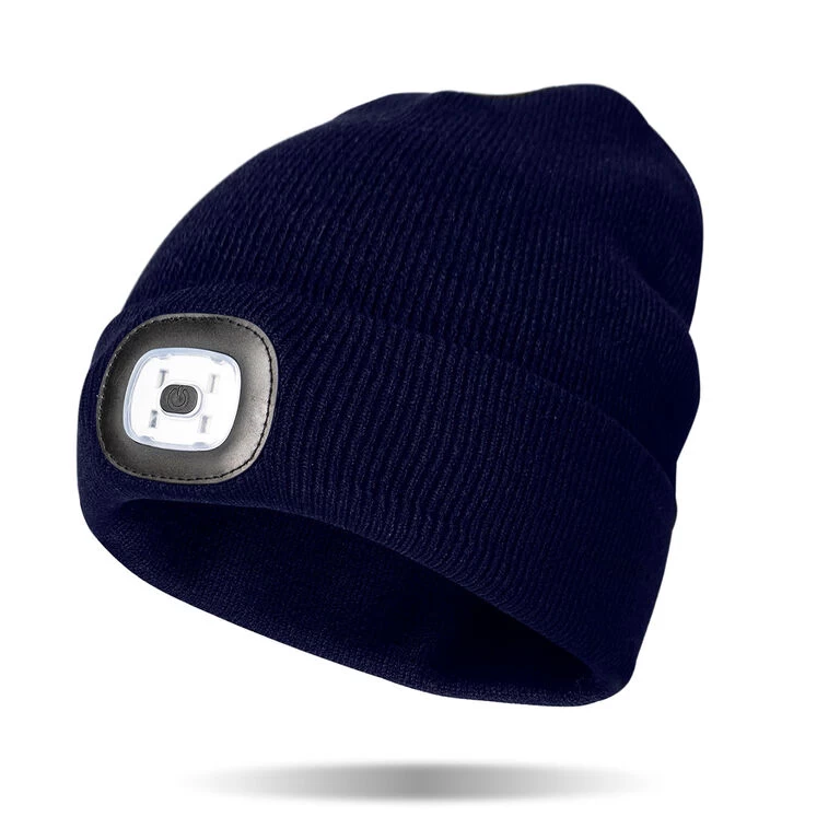 - Light-up LED beanie features three brightness settings and a rechargeable light.