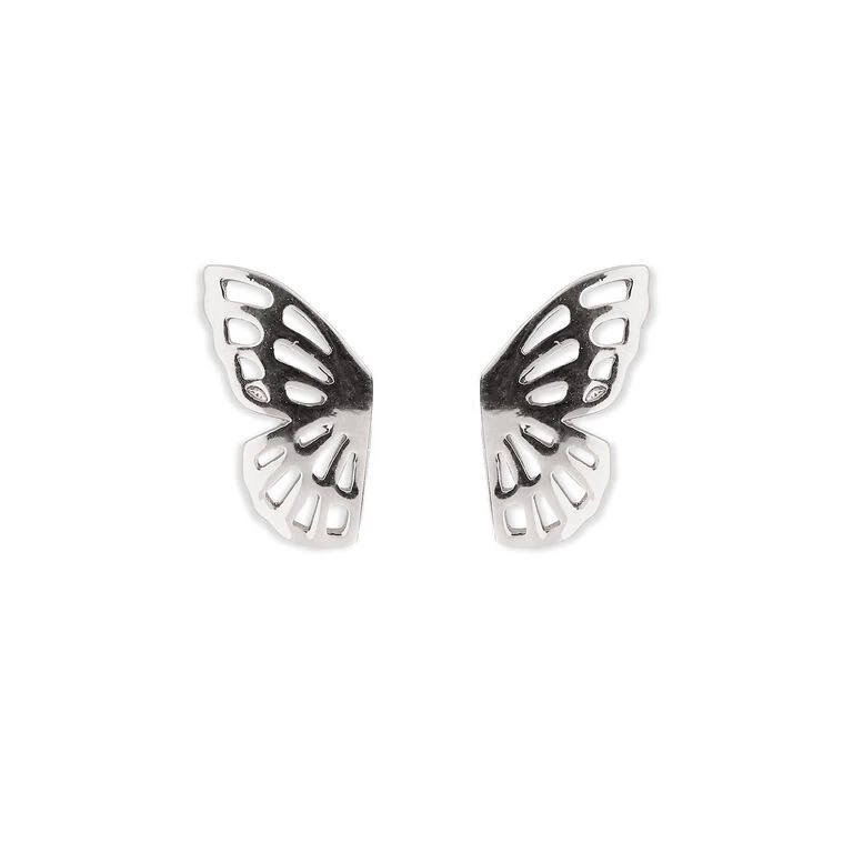 - Pura Vida silver earrings feature cutout butterfly wing design.