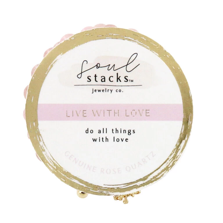 - Set of 3 Soul Stacks stretch bracelets feature rose quartz semi-precious stones and metal beading.