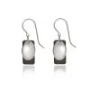 - One pair of silver hoop earrings features half-circle, semi-precious turquoise stones.
