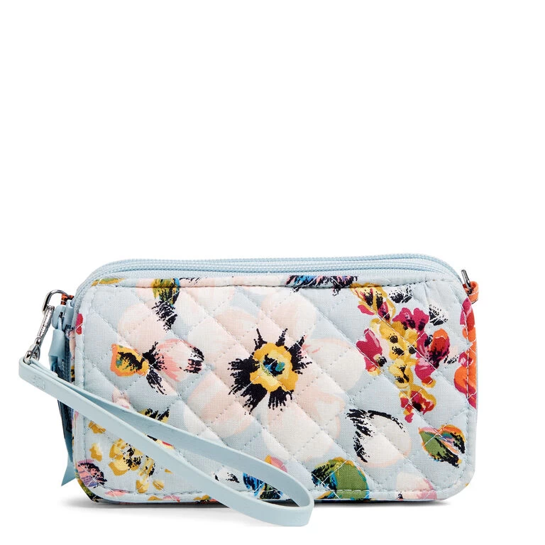 You wear many hats throughout the day so you need accessories that can adapt with your needs. Enter the Vera Bradley all-in-one crossbody bag in a light blue and floral pattern made of quilted recycled cotton fabric. This small purse is a multifunctional must-have for a girl who is always on the go. With plenty of pockets and card slips, this organized wallet-turned-wristlet offers hands-free convenience, while RFID-blocking technology protects credit and debit cards from unwanted scans.